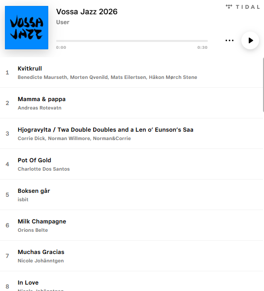 Vossa Jazz er ein møteplass for nyskaping og tradisjonar – på tvers av generasjonar. Den musikalske profilen vår femner om jazz, folkemusikk og verdsmusikk. Velkomen til Voss og Vossa Jazz!